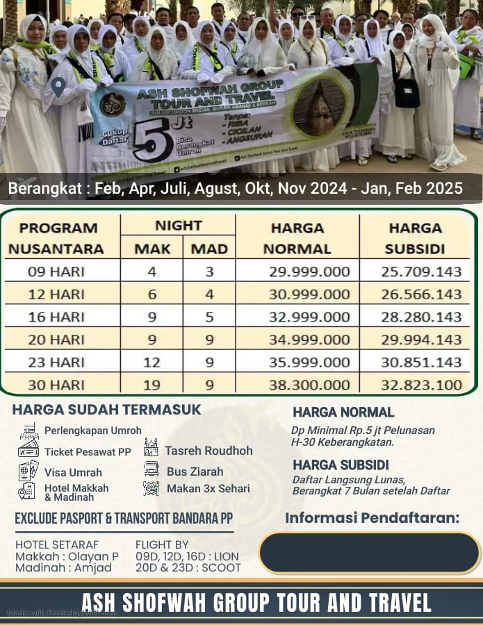 Dengan harga yang terjangkau dan pelayanan terbaik, paket umroh kami adalah pilihan yang tepat. Segera daftarkan diri Anda sekarang juga! 🤝 seowa