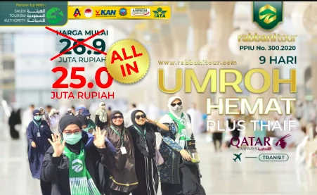 Selamat datang di Rabbanitour, partner perjalanan terbaik Anda untuk mewujudkan impian memasuki Tanah Suci. Dengan bangga, kami mempersembahkan Program Umroh Hemat 2024, sebuah perjalanan menuju keberkahan yang nyaman dan efisien, dibimbing oleh Tour Leader dan Muthowwif Ahlussunnah berpengalaman. Dapatkan pengalaman berumroh tanpa kompromi dengan harga terjangkau mulai dari 20 jutaan rupiah.