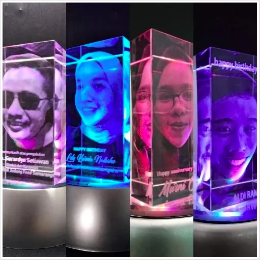 Kami mempersembahkan Hadiah Kado Plakat Exclusive dengan Foto Wajah Custom dalam Format 3D yang menggabungkan keindahan, keunggulan, dan kesan pribadi dalam satu paket yang menawan. Setiap plakat kami hadir dengan fitur unik: foto wajah custom dalam format 3D, diukir laser dengan presisi tinggi dalam kaca padat yang mulus.